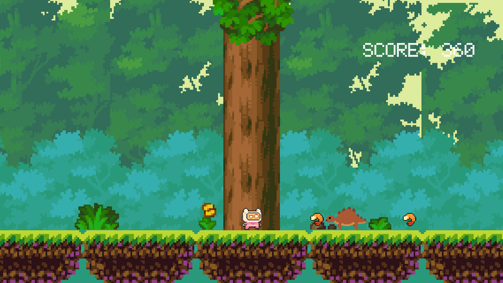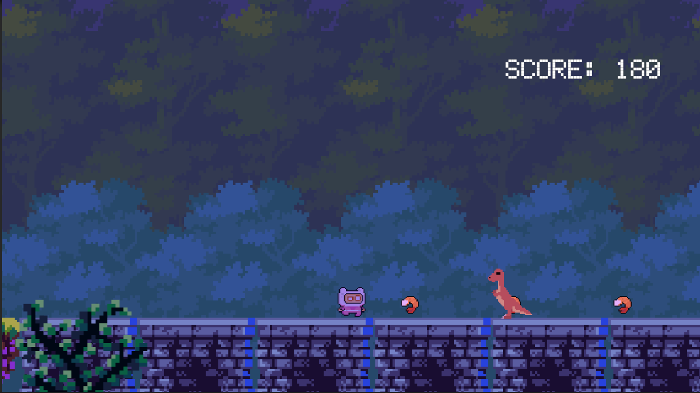 Acompaña a Pink Man, un aventurero diminuto pero valiente, que debe correr, saltar y esquivar criaturas prehistóricas para llegar al final de cada nivel y rescatar a su gato perdido.